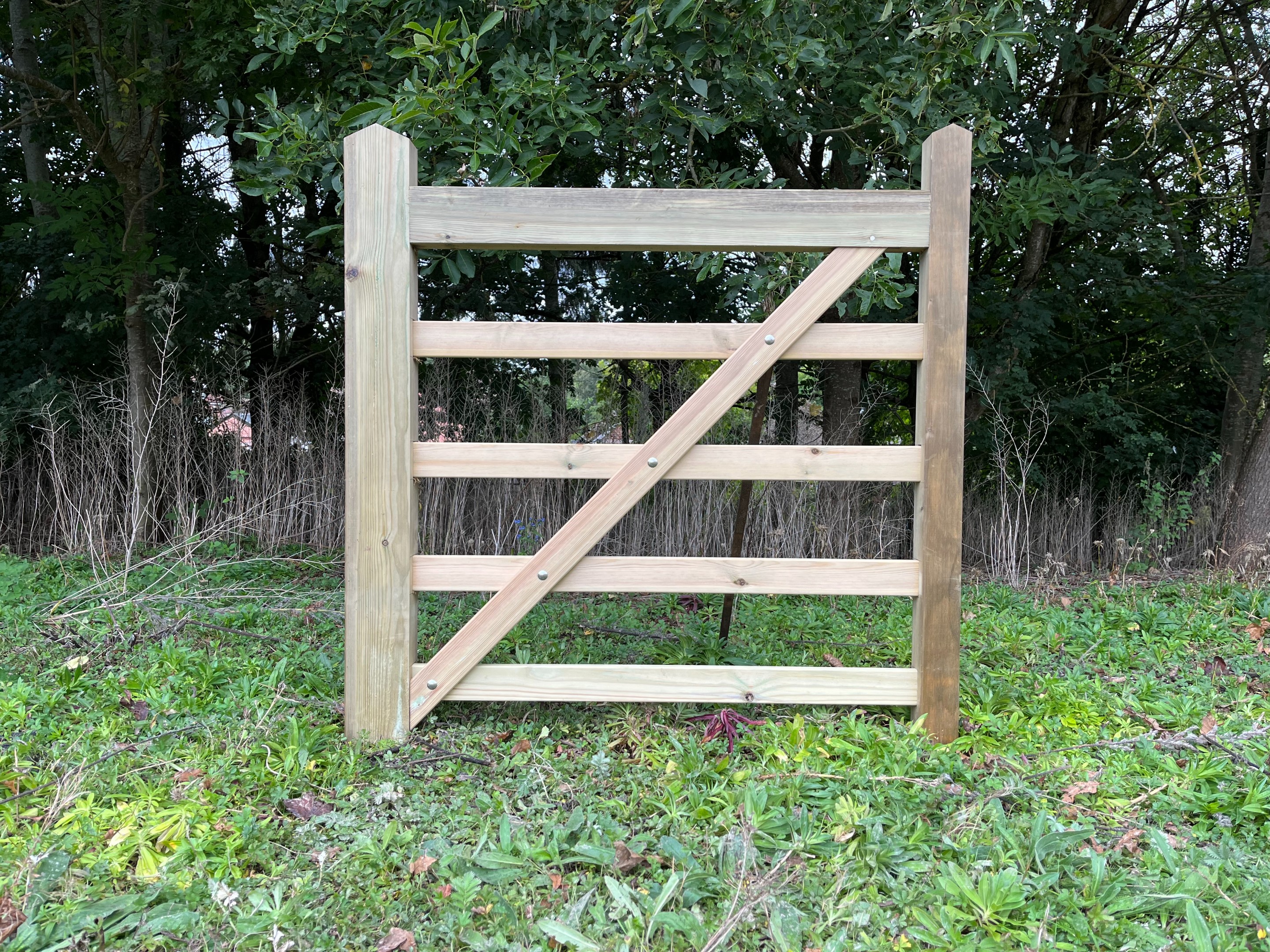 Image shows a left hand hanging 3'6 wide gate. The 4'0 gate is also single brace