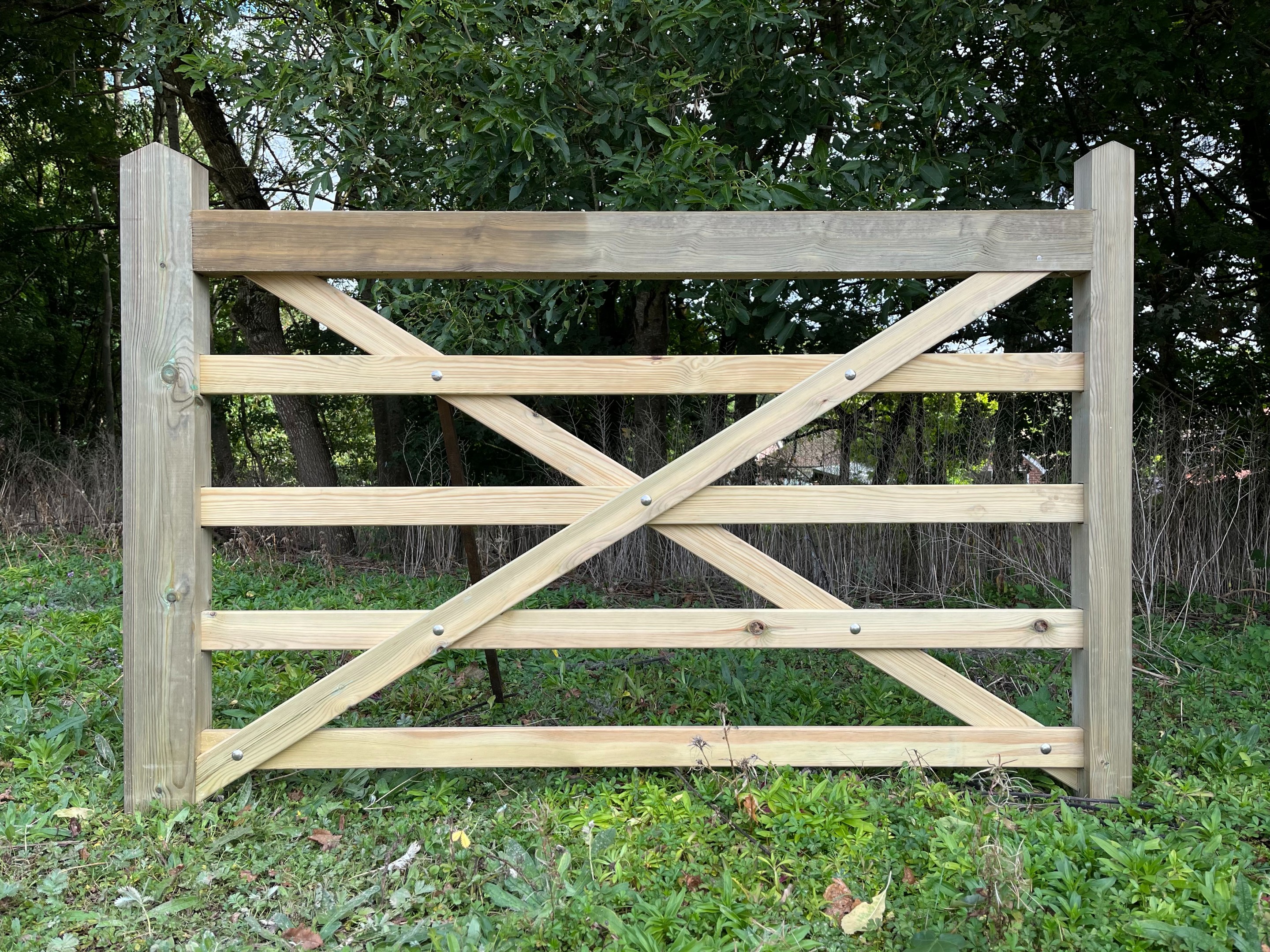 Image shows a left hand hanging 5'0 wide gate. The 6'0 gate is also diamond braced