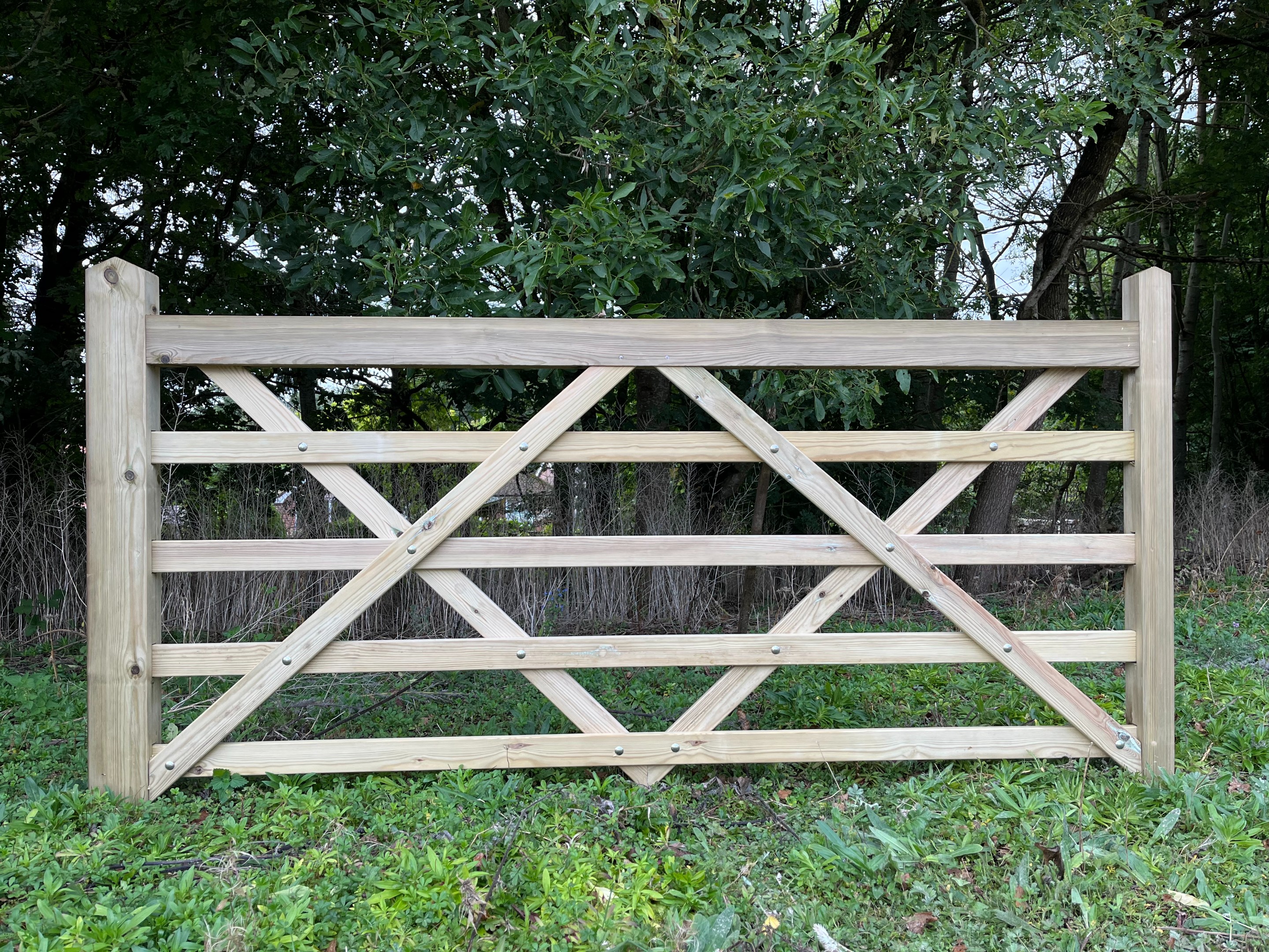 Image shows a left hand hanging 12'0 wide gate. The 7'0 gate is also double diamond braced